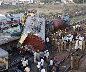 In a bizarre rail accident,an 'unauthorised man' ran an electric train for about seven kms unnoticed before ramming it into a goods train.