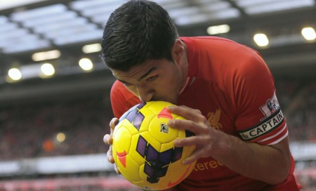 Luis Suarez celebrated his new contract by sending Liverpool to the top of the Premier League
