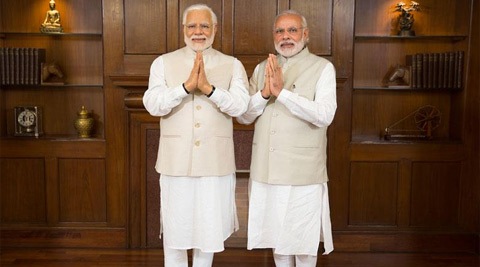 The statue shows Modi, with folded hands in ‘namaste’ style, dressed in white kurta pyjama and cream jacket.