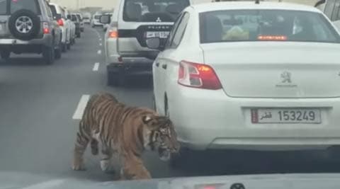 Footage including a 20-second video on YouTube and Twitter showed the big cat running through lanes of heavy traffic, apparently trying to find a way off the congested road.