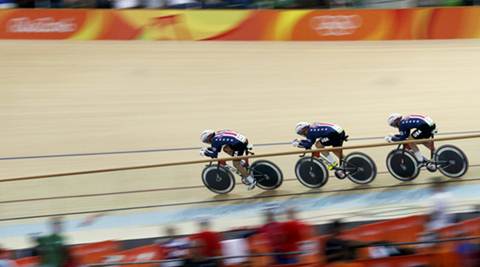 Sarah Hammer’s American outfit threw down the gauntlet with a superb ride in their heat against Australia, clocking four minutes 12.282 seconds for the 4,000m endurance event — a second quicker than Britain’s time in Thursday’s qualifiers which itself was a world record.