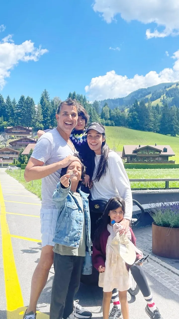 The family is often seen on vacations, enjoying outdoor activities like hiking and surfing.