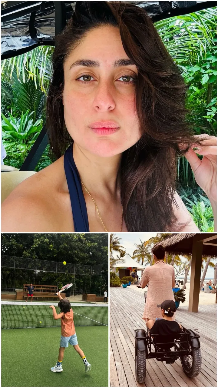 One picture captured Kareena enjoying cycling with her son, while another shows little Taimur playing tennis with Saif Ali Khan.