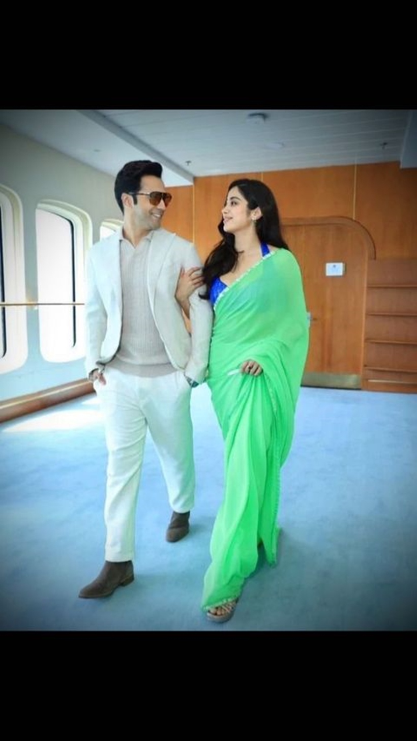 Varun looked dapper as posed with Janhvi.