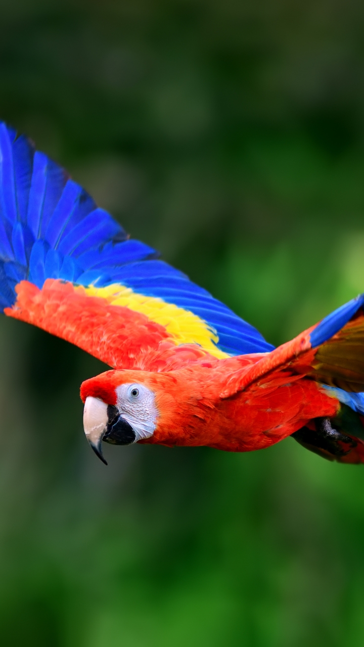 Known for its bright red, yellow, and blue plumage and booming calls, this extremely intelligent parrot hails from the Amazon rainforest.