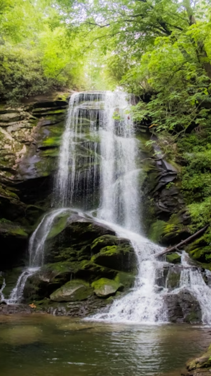 A relatively easy walk to a three tiered fall named for its now vanished elephant shaped rock. Surreal surroundings.