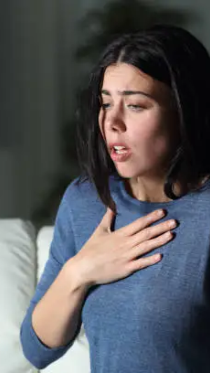 A heavy, squeezing feeling in the chest that can mimic a heart attack.